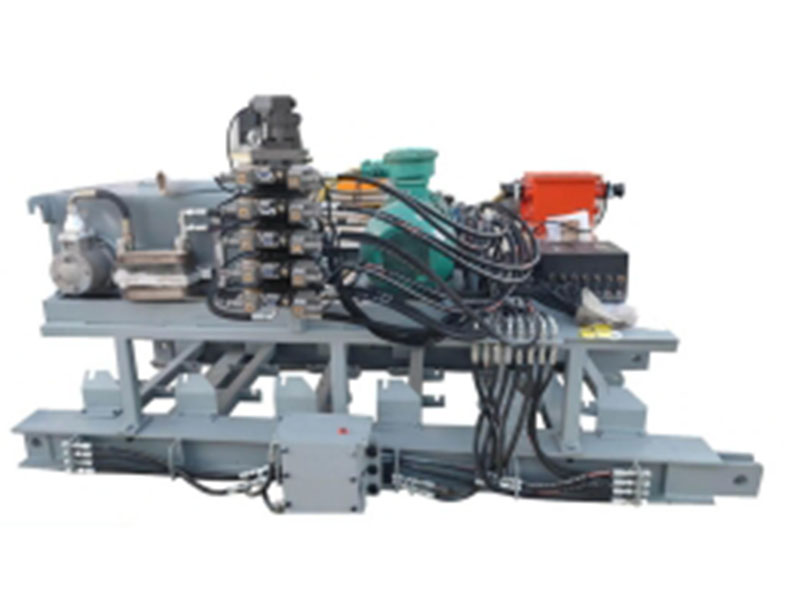 該設(shè)備由導(dǎo)軌、緩沖滑床、滑枕推移油缸、機尾座、泵站段、電纜段、外軌道液壓控制系統(tǒng)等部分組成。